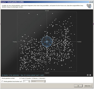 The free Software Media Go from Sony can actually do the same thing with your music collection on PC. All you need is to import your songs to its library and let the program do its work (it took about 4 hours for my 33Gig of data so far.. Still on work). After its finished, you can create SenseMe playlists by marking an area over the "mood scale" lets say.. The directions are called Fast, Slow, Sad, Happy. As you can see from my diagram, I quite dig sad slow songs :D